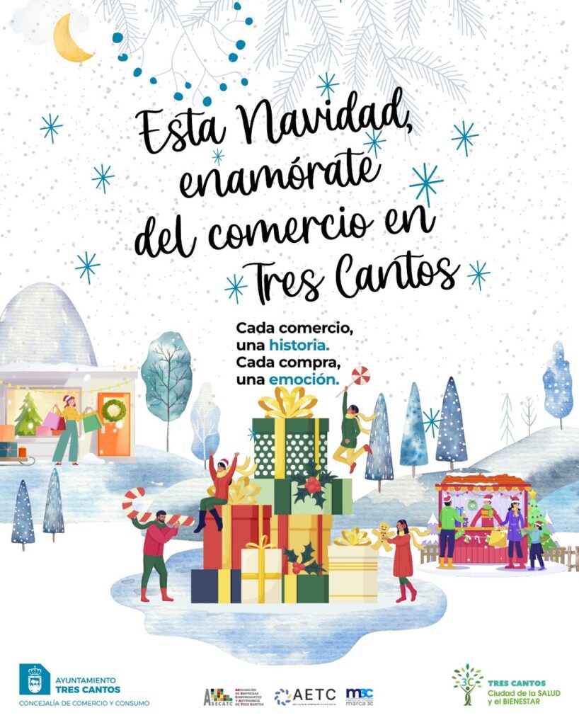 Tres Cantos impulsa el comercio local durante la Navidad con la campaña ‘Esta Navidad, enamórate del comercio en Tres Cantos’, que se desarrollará desde el 20 de noviembre de 2025 hasta el 12 de enero de 2026. La iniciativa, promovida por la Concejalía de Comercio, busca fomentar las compras en los comercios del municipio y dinamizar la economía local durante las fiestas.