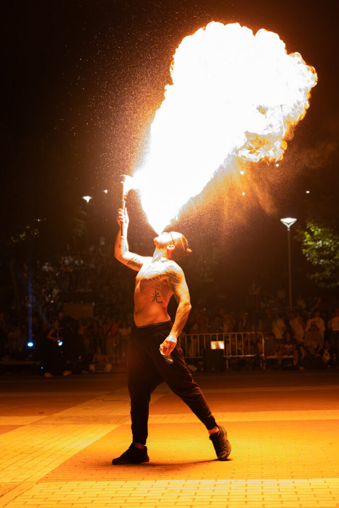 A las 22:40 horas dará comienzo el espectáculo de danza con la participación de la escuela ‘Baila Irene de Alba’, seguida del grupo de baile Acontratiempo. Más tarde, a las 23:45 horas, los malabaristas de fuego y la percusión de Batucán animarán la noche antes de que la hoguera se encienda, invitando a los más valientes a saltarla cuando llegue la medianoche.
