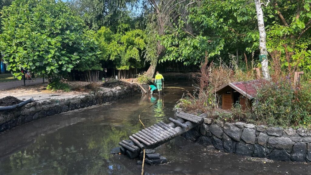 En el estanque del Sector Islas, los equipos municipales realizaron un vaciado completo del lago para acometer una limpieza a fondo de los lodos acumulados y sanear la vegetación circundante. Esta intervención mejora notablemente la calidad del agua y ayuda a prevenir la aparición de plagas, como roedores, que podrían afectar al equilibrio ecológico y generar molestias a los vecinos.